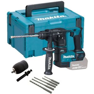 Makita Model DHR171 is a 17mm cordless rotary hammer powered by 18V LXT Li-ion battery (sold separate). The Makita Brushless motor is precision engineered to be up to 50% more efficient than a comparative model. This means a fully charged 18v lithium-ion battery will last almost twice as long as a product running on a standard motor. Features and Benefits: Brushless motor One touch sliding chuck for easy bit installation and removal. 2-mode operation: Rotary only and Rotary hammer Electric brake Variable speed control by trigger Constant speed control Forward/reverse rotation LED job light Compact and lightweight design Vibration absorbing housing. Includes: Side handle Depth stop17 Piece SDS Chisel Set + Tool RollSDS Set Sizes: 5 x 110mm 5.5 x 110mm 6 x 110mm 6 x 160mm 7 x 160mm 8 x 110mm 8 x 160mm 8 x 210mm 10 x 110mm 10 x 160mm 10 x 210mm 14 x 260mm 5 Chisels for SDS-plus hammers with chisel function PLEASE NOTE THIS MACHINE IS A 2 FUNCTION SDS AND DOES NOT HAVE A CHISEL FUNCTION.