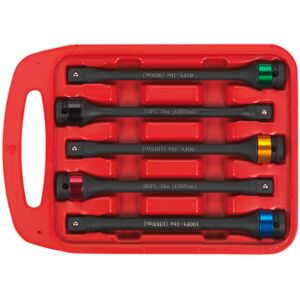 These chrome Molybdenum steel torque sticks, designed for use with air and electric impact wrenches, prevents over-torque of wheel nuts. They have anodised aluminium colour-coding for easy selection. The set features a twist distortion marking for checking serviceability of tool. Product comes supplied in a storage case.