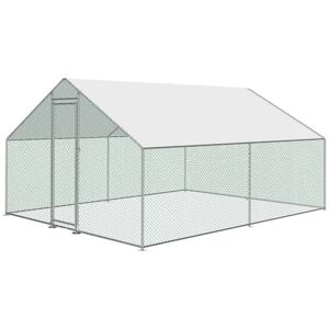 Key Features Large Pet Run - KCT Extra Large 2.5 x 3m Apex Walk In Pet Run - a spacious galvanised run that gives your pet room to run and explore in safety. A front door allows you to easily walk in to get to the pets All Year Round Protection - A sun shade helps shelter animals from direct sun and rain. The mesh netting ensures fresh airflow around the pets with the roof providing shelter from extreme heat, sun or rain. Predator Proof - Steel frame + chicken netting keeps your pet safe and secure from potential predators. The door locks safely in place to prevent your pets from escaping Versatile for All - Suitable for animals such as chickens, rabbits, dogs and cats. Use alongside wooden rabbit hutches or chicken coops for added comfort and protection Dimensions (LxWxH) - 250 x 300 x 195cm. Includes all parts needed including instructions The KCT Galvanised Chicken/Pet Run enables you to create the perfect outdoor environment for your pet. Whether for use as a free-range chicken