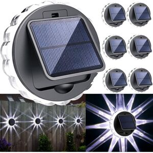 [3 lighting modes] Constant white light/breathing light mode/rotating light mode create a good ambiance for your garden, patio , stairs, patio, fence, garden, porch, driveway, gutter, etc. 【Rechargeable solar panel Adjustable angle】 , can absorb more light than other products in the same place. Only 4 to 5 hours of sunlight can provide 10 hours of lighting at night. Don't worry about turning the lights off and on. In the ON - OFF switch of the twilight sensor. Widely used : outdoor solar fence lights, perfect for illuminating the Stairs, paths, gardens, terraces, can also be used to illuminate front doors, backyards, driveways, garages, exterior walls ;laughter, etc. [Easy to use; install] The garden lights are powered by solar energy and can be installed in any position, fixed by screws. Suitable for patios, fences and walls. 【Waterproof Guaranteed】 The solar garden lights feature an ABS hard shell and solar panels high quality, designed to withstand wear and tear. rain, wind or rain