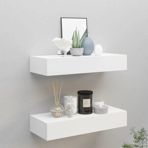 Introduce a touch of elegant charm into your interior decor with these compact drawer shelves! Crafted from MDF and metal, this floating shelf is built to last. The wall-mounted shelf with a drawer will offer ample space to place picture frames, collectibles, books, toys, small plants, etc. It adds design and style to different living rooms and gives them a bright feeling. Ebern Designs Finish: White, Size: 10cm H x 60cm W x 23.5cm D