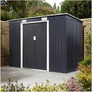 Rowlinson Trentvale Metal Sheds are an attractive, durable and low maintenance alternative to a traditional timber shed. Featuring double, sliding lockable doors for security, gable vents for better air circulation as well as fire and rot resistance for additional peace of mind knowing that your garden valuables are safe and protected. Trentvale Metal Sheds are pre-painted in light grey with off white trim and available in a variety of sizes. Features: Pent style roof Double sliding doors Lockable (requires padlock, not supplied) Gable vents for better air circulation Pre-painted: dark grey with off white trim 0.25mm steel thickness Fire and rot resistant Low maintenance Door fitted to 8' side only Floor not included Dimensions: External: Height: 1760mm Width: 2610mm Depth: 1210mm Internal: Height: 1710mm Width:2510mm Depth: 1100mm Door: Height: 1570mm Width: 1090mm Includes: Assembly instructions Delivery: Please note deliveries are to mainland UK only