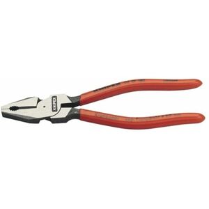 Expert Quality, drop forged from chrome vanadium steel, hardened and tempered with additionally induction hardened cutting edges. Higher leverage is achieved by setting the fulcrum point closer to the jaw, increasing the lever moment. Lacquered finish for corrosion protection with heavy duty, soft grip handles with slip guards. Manufactured to DIN Standard Features and Benefits • Expert Quality • Slip guards for extra safety • Chrome vanadium steel fully hardened and tempered with induction hardened edges Contents 1 x Heavy Duty Soft Grip High Leverage Combination Pliers, 200mm