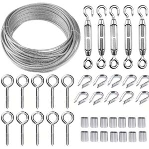 【2mm Stainless Steel Wire Rope Kit】 - Includes 30M/2mm Stainless Steel Wire Rope, M5 Stainless Steel Wire Rope Hook Turnbuckle, M5 Stainless Steel Eye Hook, 2mm Steel Wire Rope Thimbles, 2mm Aluminum Wire Rope Sleeves, this kit contains everything you need. 【2mm PVC Coated Stainless Steel Wire Rope】 - Steel Wire Rope Hanging Kit is made of 304 stainless steel, PVC coated wire, has a smooth surface that is easy to maintain, making it less abrasive, strong weather resistance, waterproofing, rust and corrosion resistance, as well as strong strength. This Bare OD cable is 1.5mm, covered OD is 2mm.304 Wire rope cable can be easy to trim to any desired length. 【Stainless Steel Wire Rope Turnbuckle】- M5 Steel Wire Rope Turnbuckles, M5 Eye Hooks and M2 304 stainless steel wire rope thimbles, M2 aluminum crimping loop sleeve, provides good corrosion resistance and rust resistance, and allow you to use in any conditions and anywhere! 【Convenience to operate】- M2 aluminum crimping loop just need