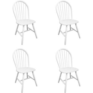 This set, consisting of four classically styled wooden dining chairs, will make a great addition to your dining room or kitchen. The rounded backrests give them rustic charm and add to your seating comfort, while their solid rubber wood construction makes them stable and durable. Delivery includes 4 chairs. Colour: White Material: Rubber wood Overall dimensions: 46.5 x 52 x 94 cm (W x D x H) Seat width: 44.4 cm Seat depth: 42.7 cm Seat height from the ground: 46 cm Delivery includes 4 chairs SKU: 242027 Maximum 110 kg per seat. EU responsible party Haba Trading B.V. Mary Kingsleystraat 1 5928SK Venlo The Netherlands Compliance-safety@vidaxl.com