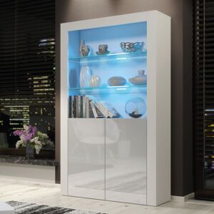 The Spectrum Display Cabinet adds a touch of contemporary elegance to your living space, offering the perfect blend of style and practicality. Measuring 100cm (W) x 170cm (H) x 35cm (D), this sleek cabinet enhances any modern interior with its refined design while providing ample storage and display options. The matte-finished body contrasts beautifully with glossy push-to-open doors, creating a clean and handle-free aesthetic. Behind the two doors lies a generous storage area divided by an internal shelf, offering an organized solution for your essentials. The open section features three compartments and two glass shelves, providing a stylish platform to showcase decor, books, or collectibles. To complete its modern appeal, LED lighting included in the set softly illuminates the glass shelves, adding a warm and inviting glow that enhances the ambiance of your space. Please note: the Oak with Black version features matte black doors, providing a unique and understated alternative to