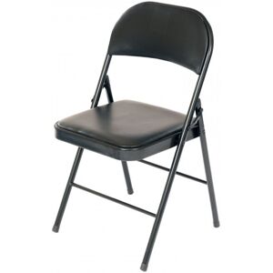 Heavy Duty Padded Folding Metal Desk Office Chair Seat The folding seat is incredibly versatile and can be used for a large range of different applications such as in the office, house and for events such as fayres and weddings. The chair features a comfortable foam seat and backrest with a durable PU cover. The seat is also manufactured from heavy duty steel which is powder coated for extra protection against wear and the elements. The chair folds flat for easy transport and storage and features rubber feet to prevent it from sliding on or marking floors. Product Specifcations: Seat Dimensions: 46 x 43cm Seat Height: 44cm Total Height: 78cm Folded Dimensions: 97 x 46cm Weight Capacity: 80kg
