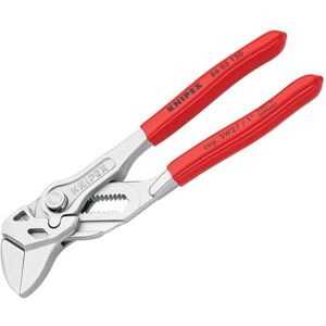 Each professional quality 150mm Plier Wrench is manufactured from special high-grade tool steel, oil hardened and tempered. Smoothly ground heads and faces with cutting edges separately induction hardened. Knipex Plier Wrench Each professional quality 150mm Plier Wrench is manufactured from special high-grade tool steel, oil hardened and tempered. Smoothly ground heads and faces with cutting edges separately induction hardened. Designed for working on nuts and unions especially components with finished surfaces, ie. plated or burnished. The unique cam action jaws give a secure and powerful grip, which increases as more pressure is applied. The cam also allows the tool to be used with a ratcheting action for speed fastening. Fitted with ergonomically designed plastic coated handles, which deliver comfort even when used for prolonged periods. A highly desirable tool for professional plumbers and various other tradesmen.