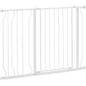 Need to keep pets away from certain places? This PawHut safety gate does the job. Suitable for hallways, doorways and staircases, it has an adjustable width of 75-95 cm – perfect for different sized openings. Made from durable steel, it stays firmly upright when in use – it can also be pressure-mounted, making it easy to set up a safe and effective way to stop pets from going where they shouldn't. Specifications: ● Colour: White ● Material: Steel, ABS ● Overall Dimensions: 76H x 75-95W cm ● Door Panel Width: 73 cm ● Opening Width: 54 cm ● Expansion Kit: 10 cm ● Item label: D06-109 Features: ● Bottom lock block for added stability ● Door opens in both directions ● Can be opened with a single hand – press and lift the button ● Adjustable width of 75-95cm ● Suitable for doorways, hallways and staircases ● Suitable for small and medium dogs up to 20kg, 39cm in shoulder height ● Assembly required