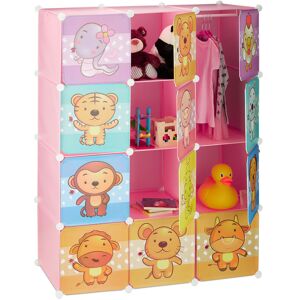 This cute little shelf for children comes in vibrant colours and provides order. The kid’s wardrobe features 8 square compartments and two tall compartment with clothes rail. Various animals are featured on the doors of the colourful shelf such as bunny, mouse and monkey. Girls and boys alike will rejoice at this happy scene. The stand shelf is based on a plug-in system and can be assembled after your own fashion. Turn the wardrobe into a sideboard for toys and books. There are no limits to your imagination here. Tip: When assembling the shelving system, please make sure to do so at room temperature. This will ensure that the connecting pieces will stay flexible enough. Children’s Plug-In Shelf Details - Size: H x W x D: app. 145 x 110.5 x 46.5 cm - Clothes rail compartment: H x W x D: app. 70 x 35 x 45 cm - Regular compartments: H x W x D:app. 35 x 35 x 45 cm - Weight: app. 10.5 kg - Maximum capacity: 8 kg per compartment - Material: Plastic, metal - Various light colours available
