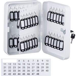 Keys are stored safely and within easy reach in this lockable key box with 48 hooks. Keep track at all times by numbering the spaces and keys, making it easier for family members at home or employees at work. The sturdy iron key cabinet can be quickly and easily mounted on the wall with the included material. From now on, all keys will have a designated place and will be securely stored even after hours. Key cabinet in detail - Dimensions H x W x D: approx. 25 x 18 x 8 cm - Weight: approx. 1.3 kg - Material: Iron, plastic - Available in various colours Lockable key cabinet - Box with security lock including two keys - 48 hooks for hanging and organising keys - Number spaces and label key rings with stickers - Durable key safe made from robust iron - Wall mounting kit included - Versatile use in the office, garage or workshop