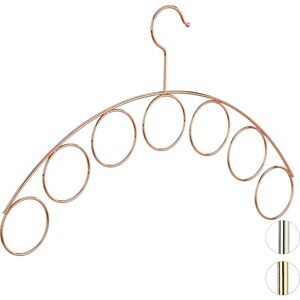 This shiny clothes hanger does not only store your clothes in a compact manner, but is itself quite the eye-catcher in your wardrobe. Thanks to the exceptional design, the hanger is both a classic coat hanger and organiser at the same time. The classic shape makes it an ideal holder for shirts, dresses, blouses and more. But the special highlight are the 7 rings that can be used for handkerchiefs, belts, ties and much more. This decorative piece shines all the more in your hallway. Clothes Hanger with Scarf Holder Details - H x W x D: approx. 24.5 x 40.5 x 0.3 cm - Ring diameter: approx. 5.5 cm - Size hook: H x W: approx. 9 x 5.5 cm - Weight: approx. 100 g - Capacity: approx. 3 kg - Material: Iron - Colour: Copper Hanger for Clothes and Accessories - Metal hanger for your favourite gear - Holder for scarves, ties, belts etc. - Chic shiny metallic look - Compact shape for an orderly closet - Clothes hanger for coatracks, wardrobe etc. Included in Delivery - 5 x Clothes Hanger