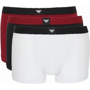 Emporio Armani Trunk 3-Pack — Rhubarb / Black / White Refresh your essentials collection with striking style and dependable comfort. The Emporio Armani Trunk 3-Pack in rhubarb, black, and white delivers designer quality, everyday versatility, and a snug, body-hugging fit all in one set. Key Features & Benefits Premium Stretch Jersey FabricMade from 95% cotton and 5% elastane, these trunks combine softness, breathability, and just the right amount of stretch to move with you while holding their shape. Striking Color TrioThis pack includes one trunk each in rhubarb (deep red), classic black, and crisp white — giving you variety without compromising cohesion. Contoured Fit & SupportDesigned for a body-hugging” silhouette, these trunks offer close coverage with a contoured pouch and snug leg bands for secure support. Logo Waistband DetailSubtle Emporio Armani branding on the waistband adds a refined designer accent without overpowering the clean design. Everyday DurabilityReinforced seams and high-quality stitching ensure durability through repeated wear and washing. Machine wash at 30 °C; do not bleach or tumble dry. Ideal Rise & FitWith a normal rise and a body-hugging cut, these trunks sit comfortably beneath the waistline without excess bulk. Style Reference: EM002205-AF14987-M5047