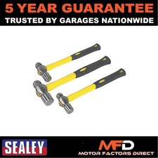 General description Sealey's Ball Pein Hammer Set includes three high-quality hammers designed for professional use. Each hammer features drop-forged steel heads and durable fibreglass shafts, ensuring longevity and reliability in various applications. This set is part of a comprehensive range of Premier Hand Tools, suitable for daily professional use. Technical specifications Contents: 340g (12oz), 450g (1lb), 680g (1.5lb) Nett Weight: 2.06kg Manufactured in accordance with BS 876 MPN: AK2031 EAN: 5051747503816 Other information Lifetime guarantee*