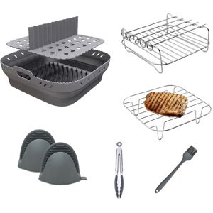 1. Wide use: Replacement grill pan for general air fryers 2. Multi-function: Multi-function frying pan, can be easily taken out of the frying basket on the handle in the center of non-stick pan. You can make fried potatoes, pizza, chicken, steak and fried vegetables for many kinds of food as needed. 3. Safe and reliable material: Made of food-grade materials, which can cook barbecue, meat, vegetables, fish and other ingredients to meet your air frying needs and is the to enjoy delicious food. 4. Easy to clean: The best alternative for air fryer, non-stick and to use. Easy to clean in dishwasher. Please do not rub with emery cloth or metal balls to protect the coating. Colour:Black Material:Silicone Size:23x24cm Package Contents: 1 * air frying pan 4 * corner protector 4 * high corner protector Only the above package content, other products are not included. Note: Light reflection and different displays may cause the color of the item in the picture a little different from the real