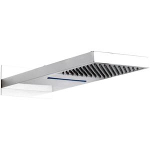 Features and Benefits: Switch between waterfall and regular shower flow with a valve diverter Rectangular shower head with water fall & regular flow Designed to be installed with a wall or ceiling-mounted shower arm Attention to detail, top quality manufacturing and innovative design Not recommended to use with solid walls Suitable for use with twin valve with diverter, triple valve or triple valve with diverter Stain rust resistant Easy to installation Guarantee: 20 years against faulty workmanship or materials (1 year on serviceable and moving parts), please see manufacturer guarantee policy for more information Shower Head Width 200mm Shower Head Depth 500mm Shower Head Height 100mm Shape Rectangular Inlet Connection Size 1/2 Minimum Pressure 0.5 Bar Shower Head Modes Multiple Material Stainless Steel Colour Chrome Style Modern Market Domestic Brand Hudson Reed Weight 4.14 Kg EAN Barcode 5055369013876 Manufacturer Part Number(s) HEAD48