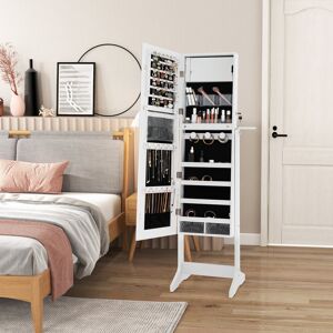 Keep your jewelry in order with this standing jewelry armoire. It has multiple storage areas, where necklaces, rings, earrings and other jewelries can be stored in order. The 3-color light helps you choose jewelry easily and meets different makeup needs. In addition, the lockable jewelry storage comes with a full-length mirror, which provides a clear reflection and helps with your daily dress check. costway Colour: White