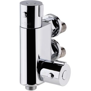 Contemporary Round Vertical Thermostatic Shower Bar Valve (1 Outlet) - Chrome - Balterley Combining high quality manufacturing and materials, this vertical thermostatic bar shower valve will be a welcomed addition to any bathroom. In a chrome finish to complement a range of bathroom designs. This bar valve is manufactured from brass and ABS to be a reliable fixture in your bathroom. This valve has thermostatic control. Product Highlights Contemporary vertical thermostatic bar shower valve Chrome finish Thermostatic control Slimline valve Manufactured from brass and ABS Round handles 1 Outlet valve