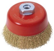 General description This is a crimped wire cup brush designed for use with angle grinders. It is suitable for cleaning, deburring, and surface preparation on various materials. Technical specifications Diameter: 100mm Wire Material: Hardened brassed steel Wire Thickness: 0.3mm Compatibility and accessories Compatible with standard angle grinders Suitable for industrial and professional use Installation Attach the brush securely to the angle grinder's spindle Ensure the tool is powered off before installation Usage Use for cleaning, deburring, and surface preparation Operate at appropriate speeds for safety and effectiveness