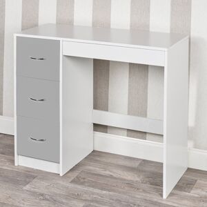 This dressing table is a fantastic addition to your bedroom. There are 3 drawers on smooth metal runners for keeping your makeup and jewelry neatly out of sight, so all you need to do is add a mirror and you're good to go. Easy cable access allows you to set up your computer to a power source with ease and a spacious drawer to take care of all your office supplies. The handles complete the look, with a high-shine chrome finish. Ebern Designs Colour: Oak/Grey